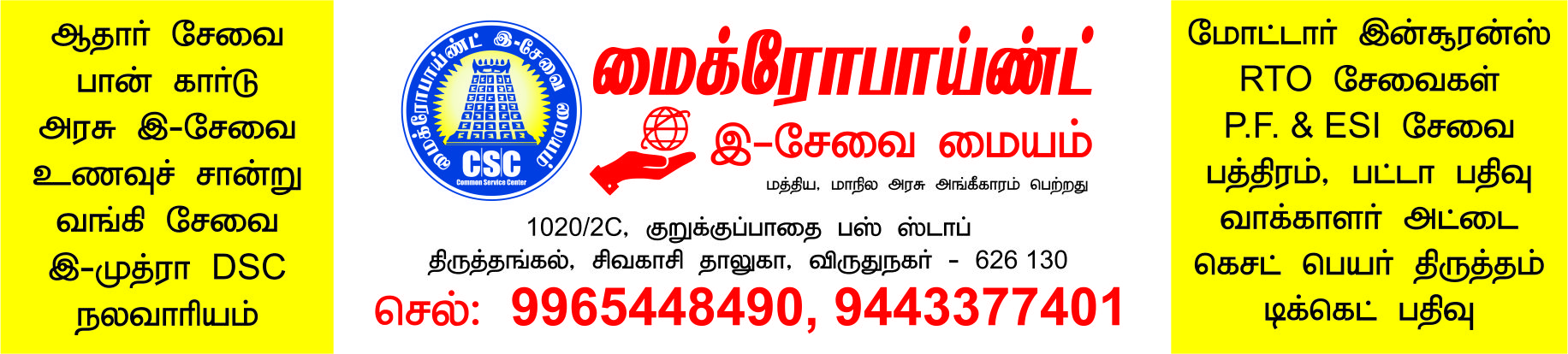 Passport செய்வாய் செய்ய அரசு அங்கிகாரம் பெற்ற சேவை மையம். கிடைக்கும் சேவைகள் - புது பாஸ்போர்ட் - பாஸ்போர்ட் ரெனிவல் - ஜூனியர் பாஸ்போர்ட் - தக்கல் பாஸ்போர்ட் - போலீஸ் வெரிபிகேசன் சான்று